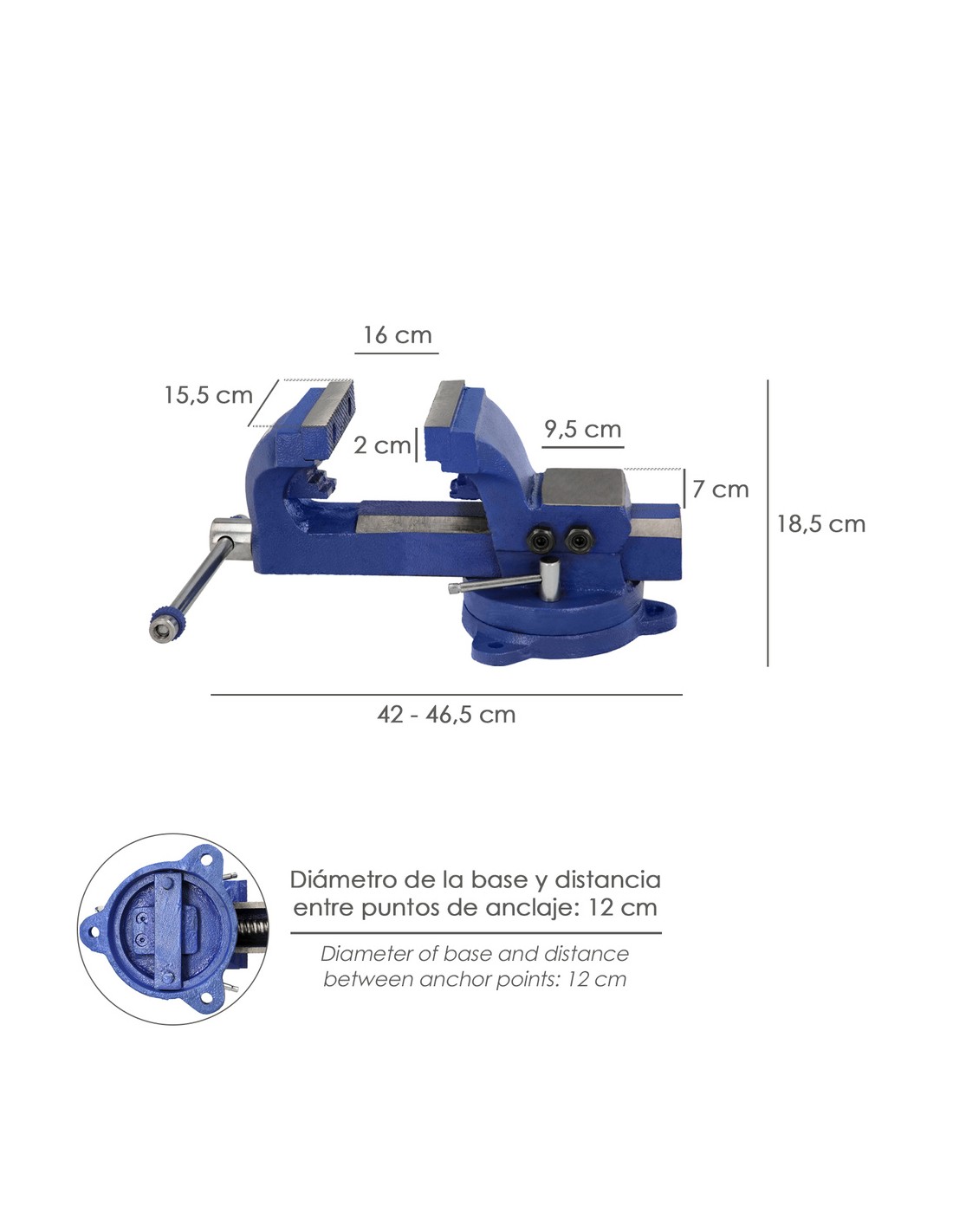 - Articulo conocido como tornillo banco paralelo, mordaza de mesa, tornillo taller, tornillo banco tubos, banco de mesa, banco de mesa giratorio, tornillo sujeción, abrazadera de banco.
