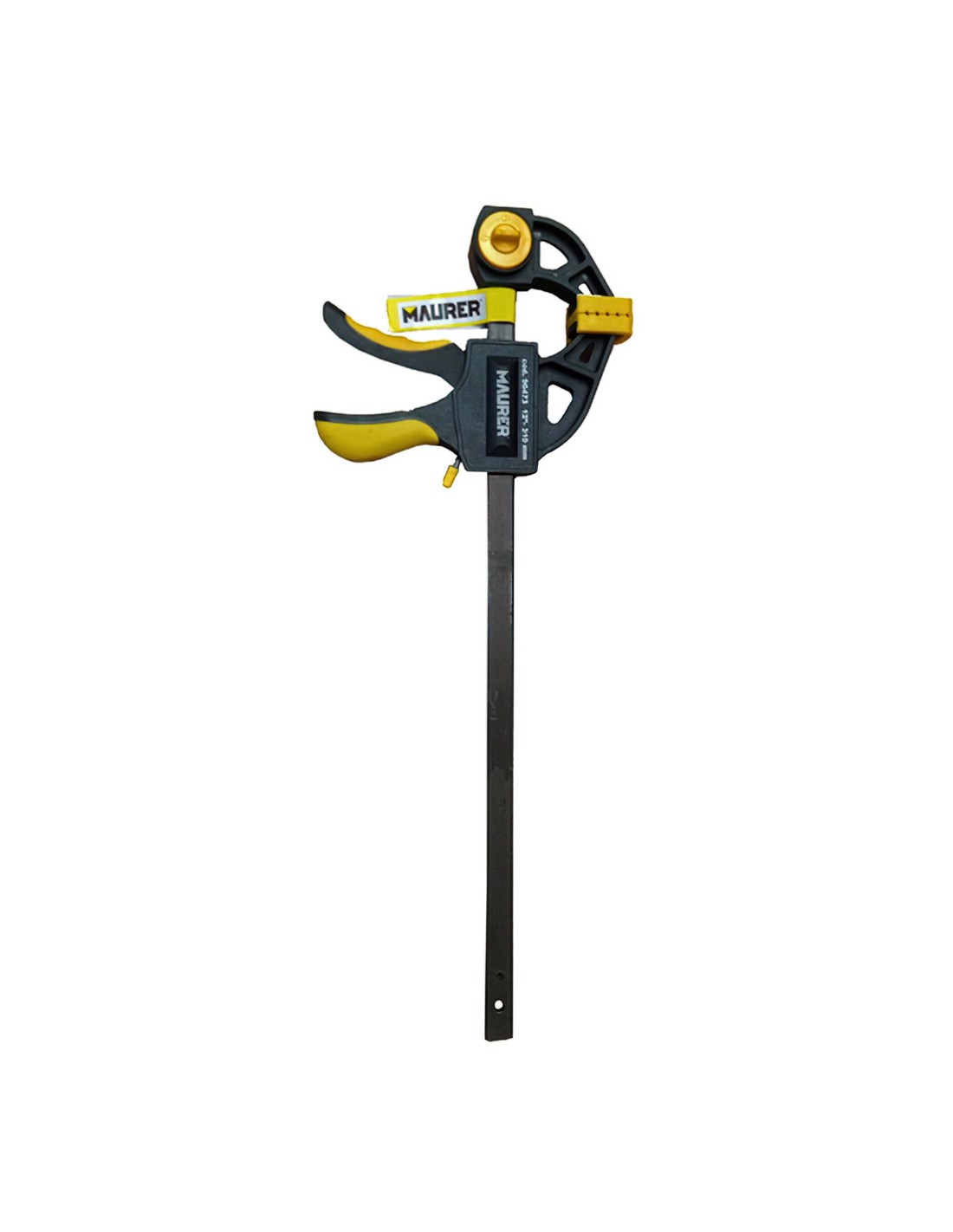 Torniquete grip Maurer 12". - Artículo también conocido como: sargento. - Muy útil para la fijación de piezas que van a ser mecanizadas, pegadas, etc. - Colores negro y amarillo. - Medida 12".