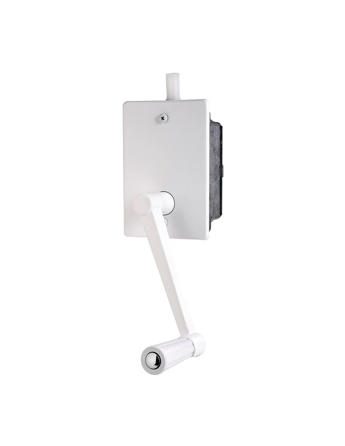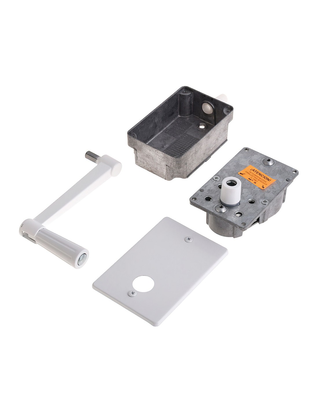 Torno elevacion persiana empotrar - Torno para empotrar. - Incluye caja, placa, mecanismo, manivela y tornillos. - Peso máximo recomendado de uso 40 kg. - Color aluminio.