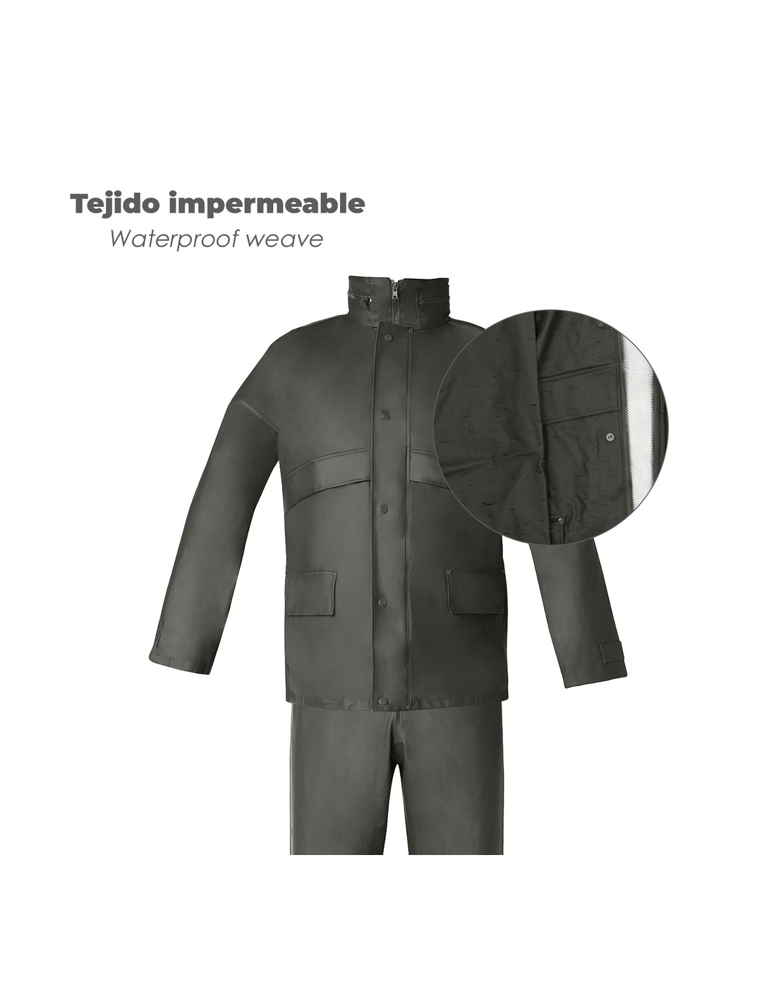 - Articulo también conocido como: chubasquero, impermeable, pantalón y chaqueta impermeable, pantalón y cazadora impermeale, impermeable de moto, impermeable de hombre, impermeable completo, poncho impermeable