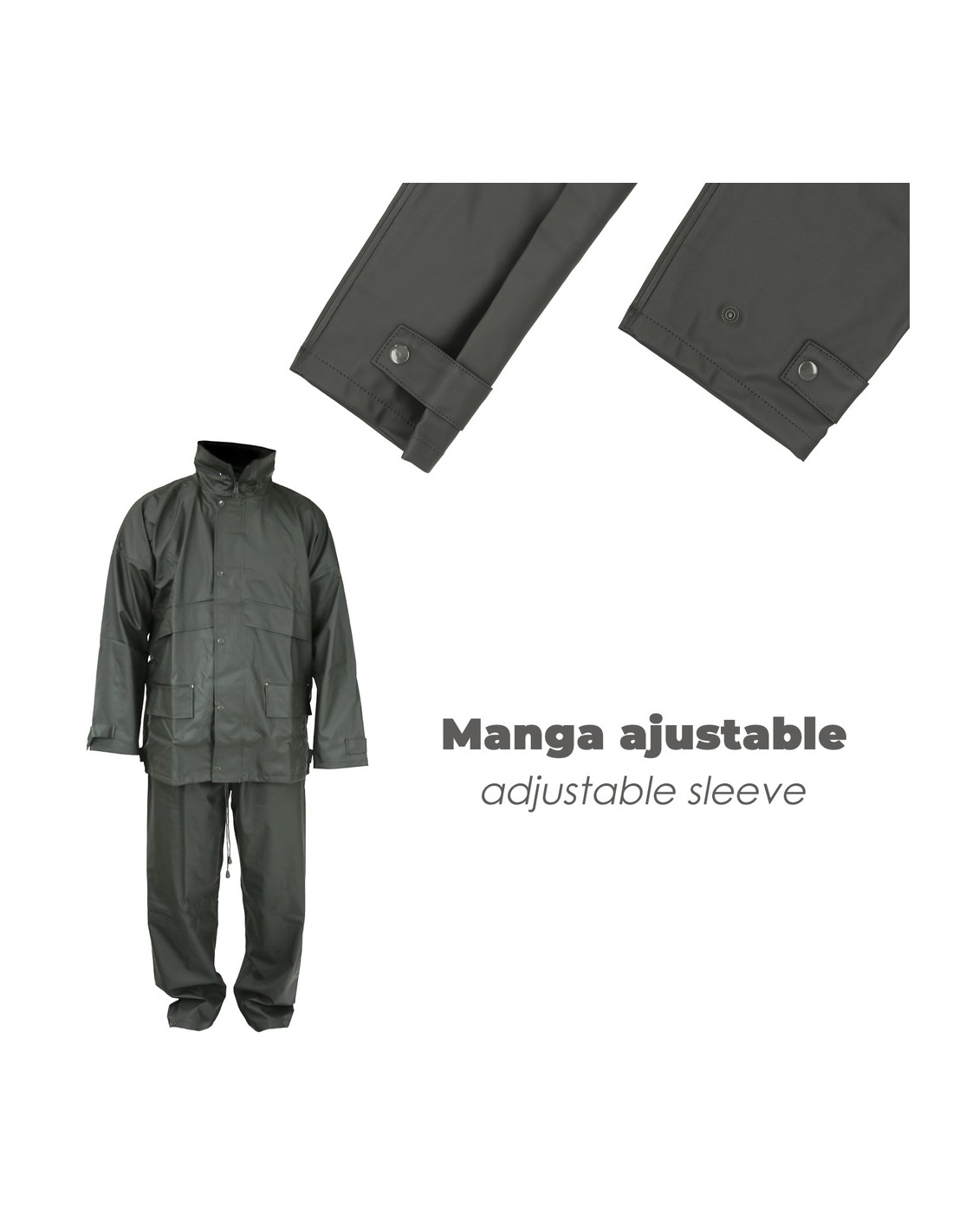 - Puños ajustes con botón a presión.