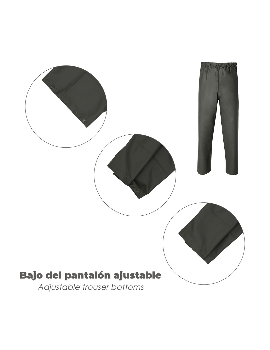 - Ajuste bajos pantalón por corchete a presión.