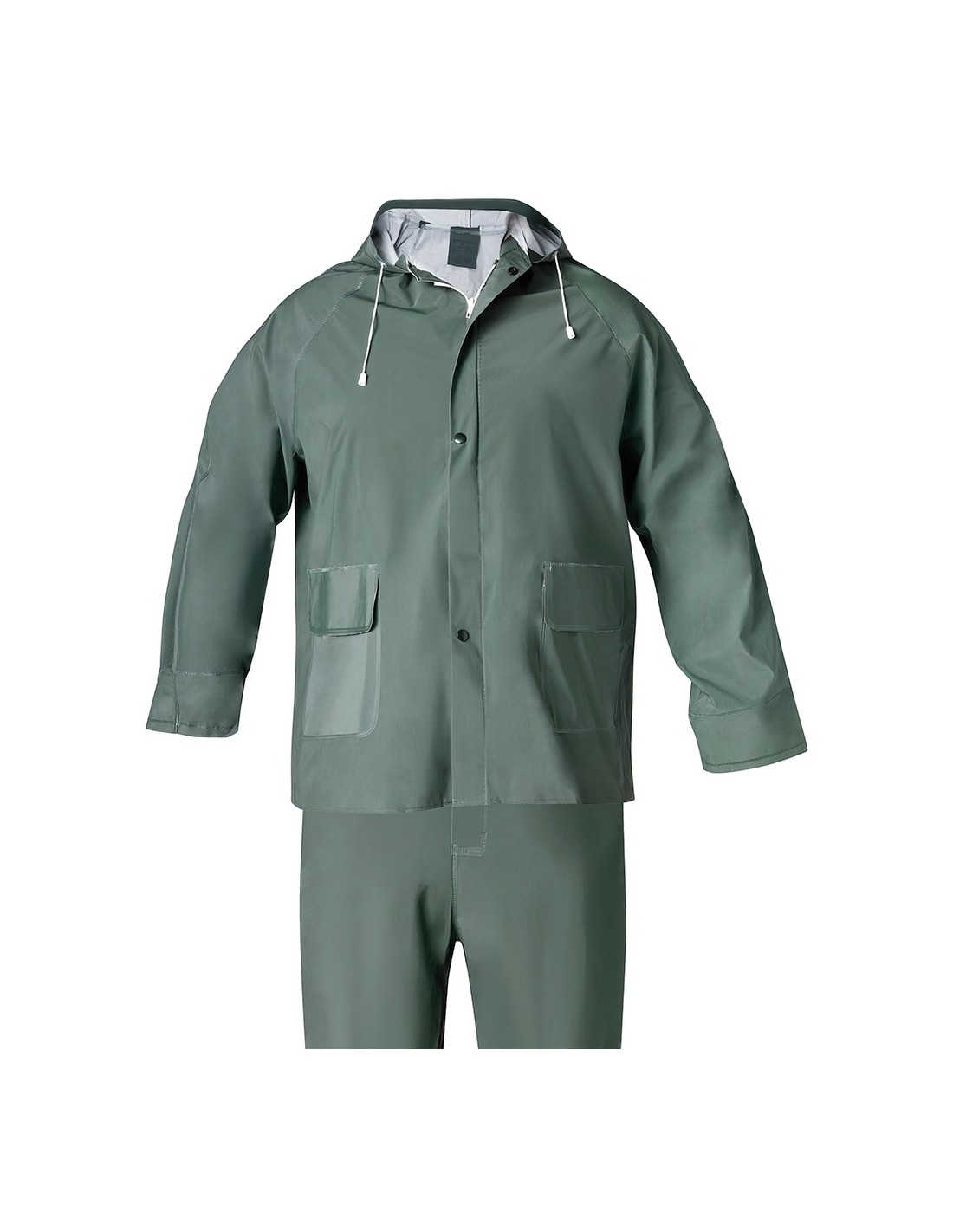 - Conjunto chaqueta pantalón pvc, capucha ajustable con cordón.