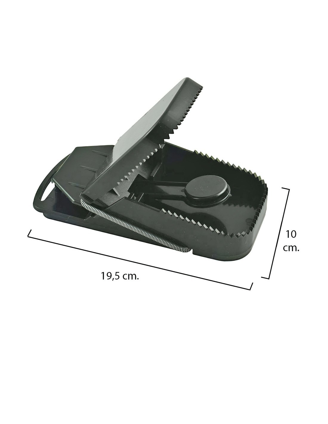 Trampa ratas plastico - No incluye cebo - Largo: 19,5 cm. - Ancho: 10 cm. - Armazón de plástico - Mantener fuera del alcance de niños y animales domésticos