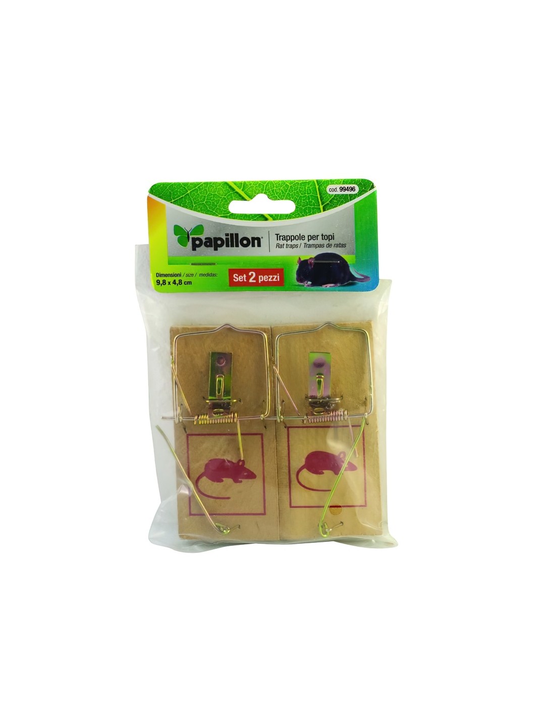 Trampas ratones madera (2 unidades) - Largo : 9,8 cm. - Ancho: 4,8 cm. - Contenido: 2 piezas - Mantener fuera del alcance de niños y animales domésticos