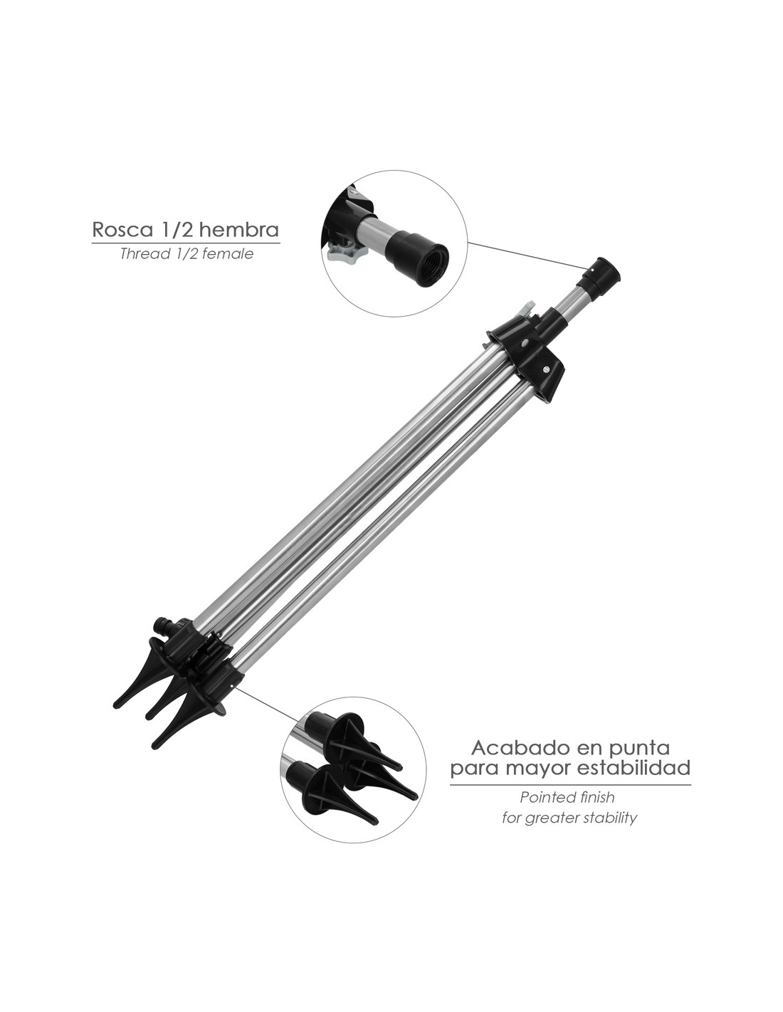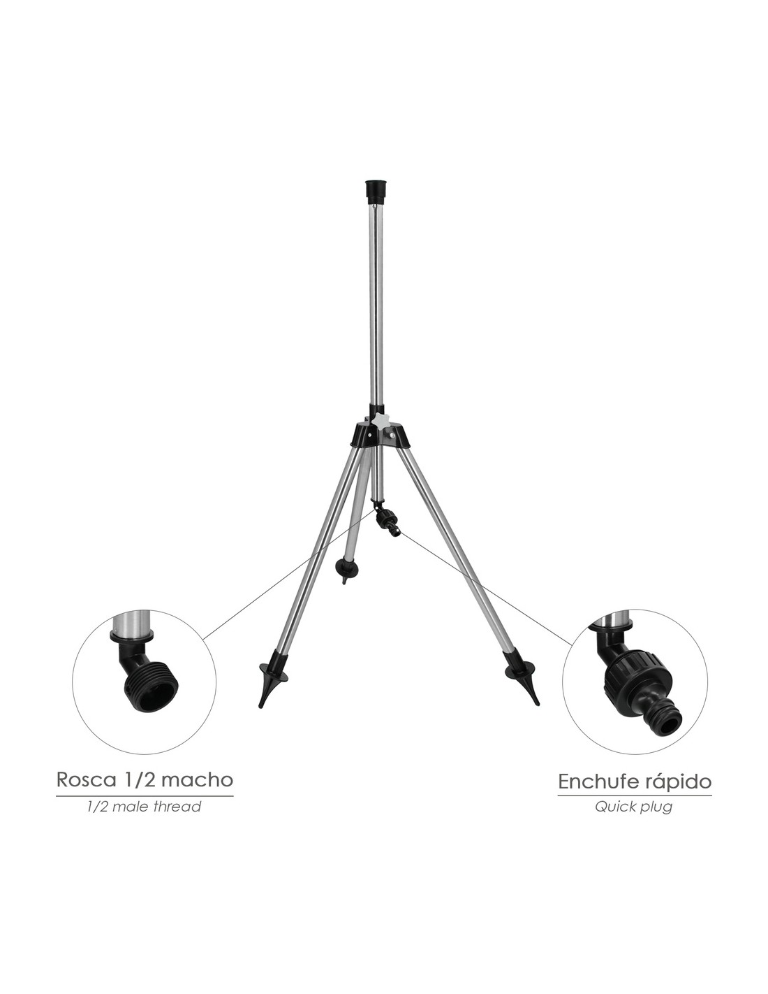 Tripode Para Aspersores Altura Regulable 55/90 cm. Tomas agua 1/2". Acero Cromado. Tripode Aspersores Jardineria