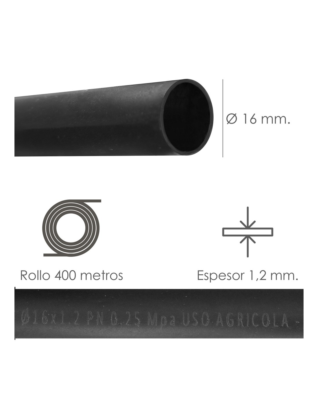 Tuberia De Riego Por Goteo Ø 16 mm. Espesor Tubo 1,2 mm. Uso Agricola 400 Metros