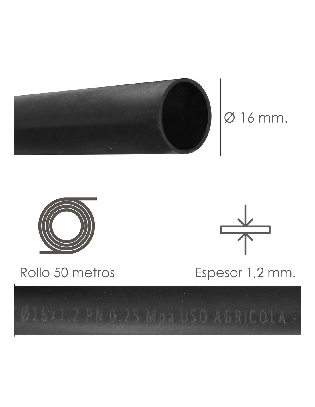 Tuberia De Riego Por Goteo Ø 16 mm. Espesor Tubo 1,2 mm. Uso Agricola 50 Metros
