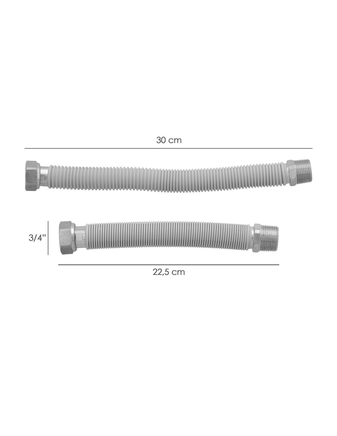 Tuberia Extensible Agua Acero Inoxidable Corrugado. Longitud de 22,5 a 30 cm. Tomas 3/4"