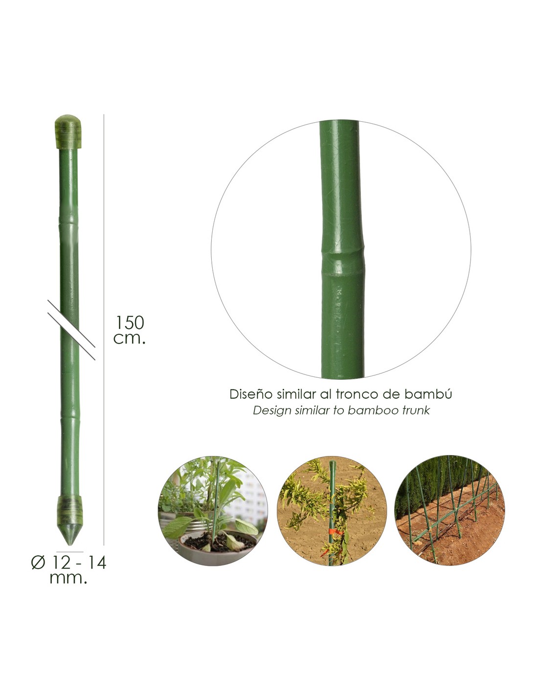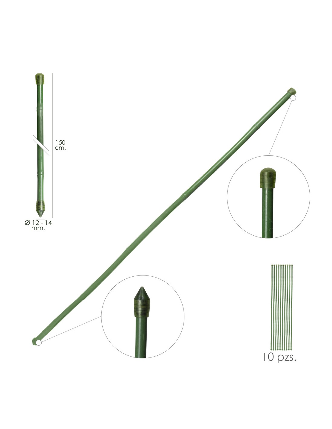 Tutor Varilla Bambú Plastificado Ø 12 - 14 mm. x 150 cm. (Paquete 10 Unidades)