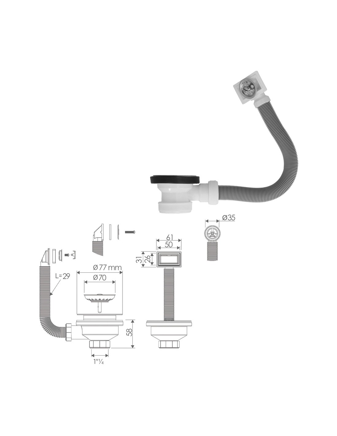 - Artículo también conocido como tubo de desagüe, válvula cesta cocina, fregadero, válvula fregadero, rebosadero, rebosadero cocina, rebosadero para desagüe, etc.