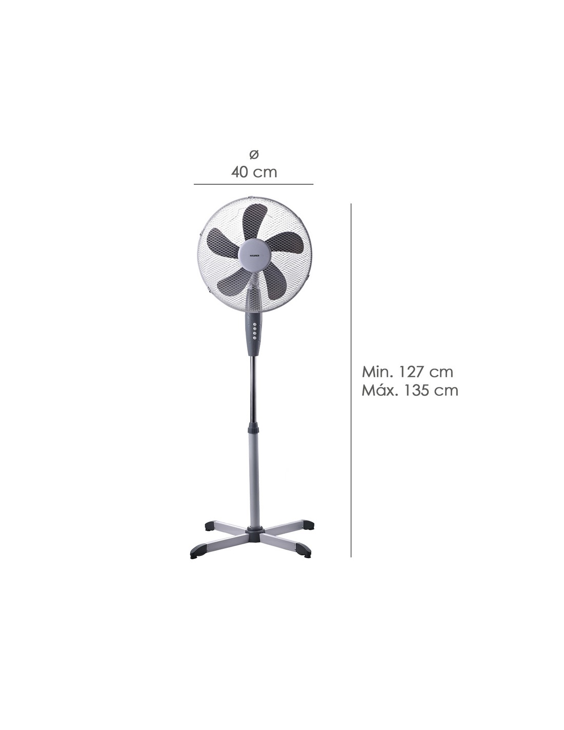 Ventilador Pie Ø 40 x 135 cm. 45 W. Oscilación Automatica, Altura Regulable, Cabezal Inclinable, Base Estable 60x60 cm.