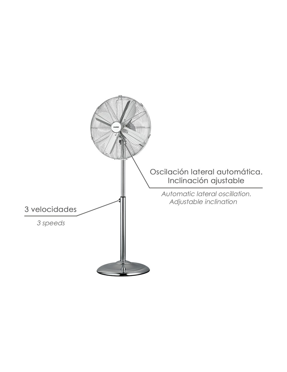 Ventilador Pie Ø 44,5 cm. Altura 130 cm. 60 watt. Ventilador oscilante. Ventilador Pie silencioso. Circulador de aire.