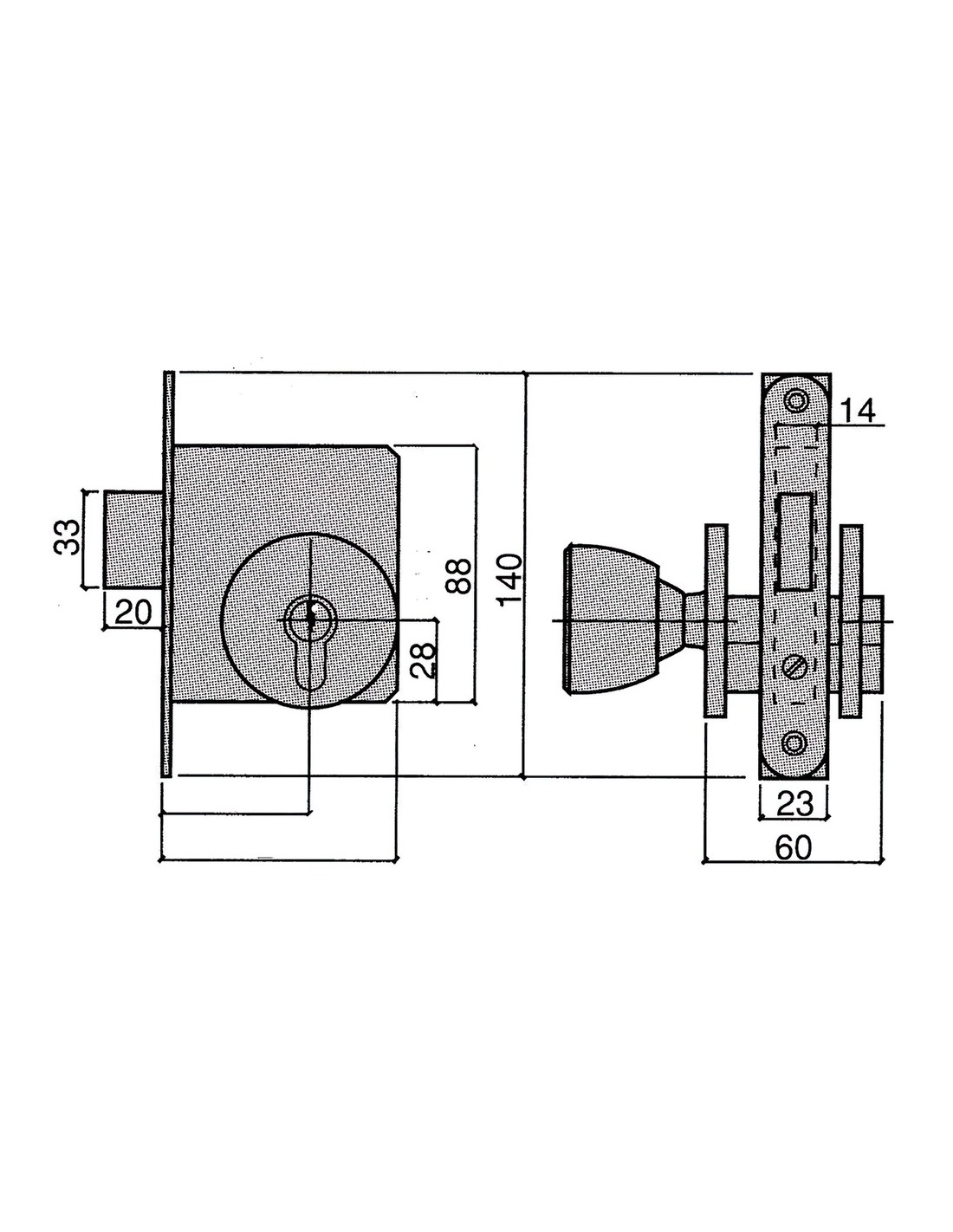 Pomo Ucem 5300-P-HL/50 - Cerradura equipada con pomo para puertas de portal con portero automático. - Equipada con cilindro europerfil 5000P. - Picaporte reversible. - Acabado en hierro latonado.