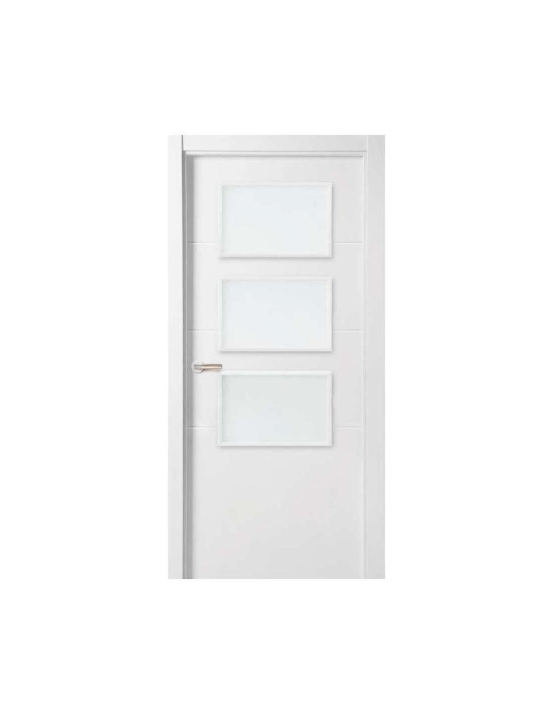 PUERTA BLOCK LACADA MACIZA RAYAS VIDRIO 2030X725X35 DERECHA