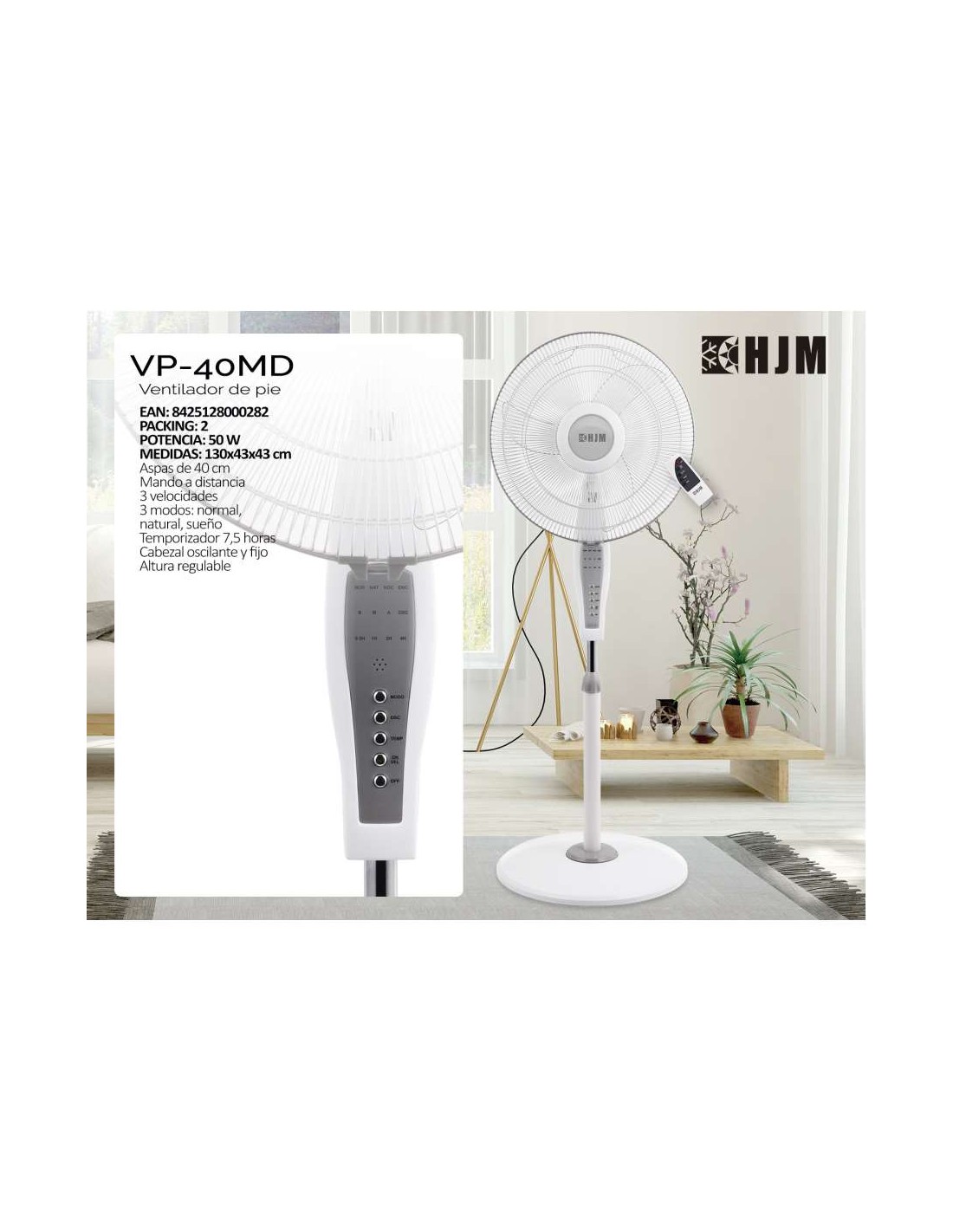 VENTILADOR DE PIE 50W BLANCO 40CM